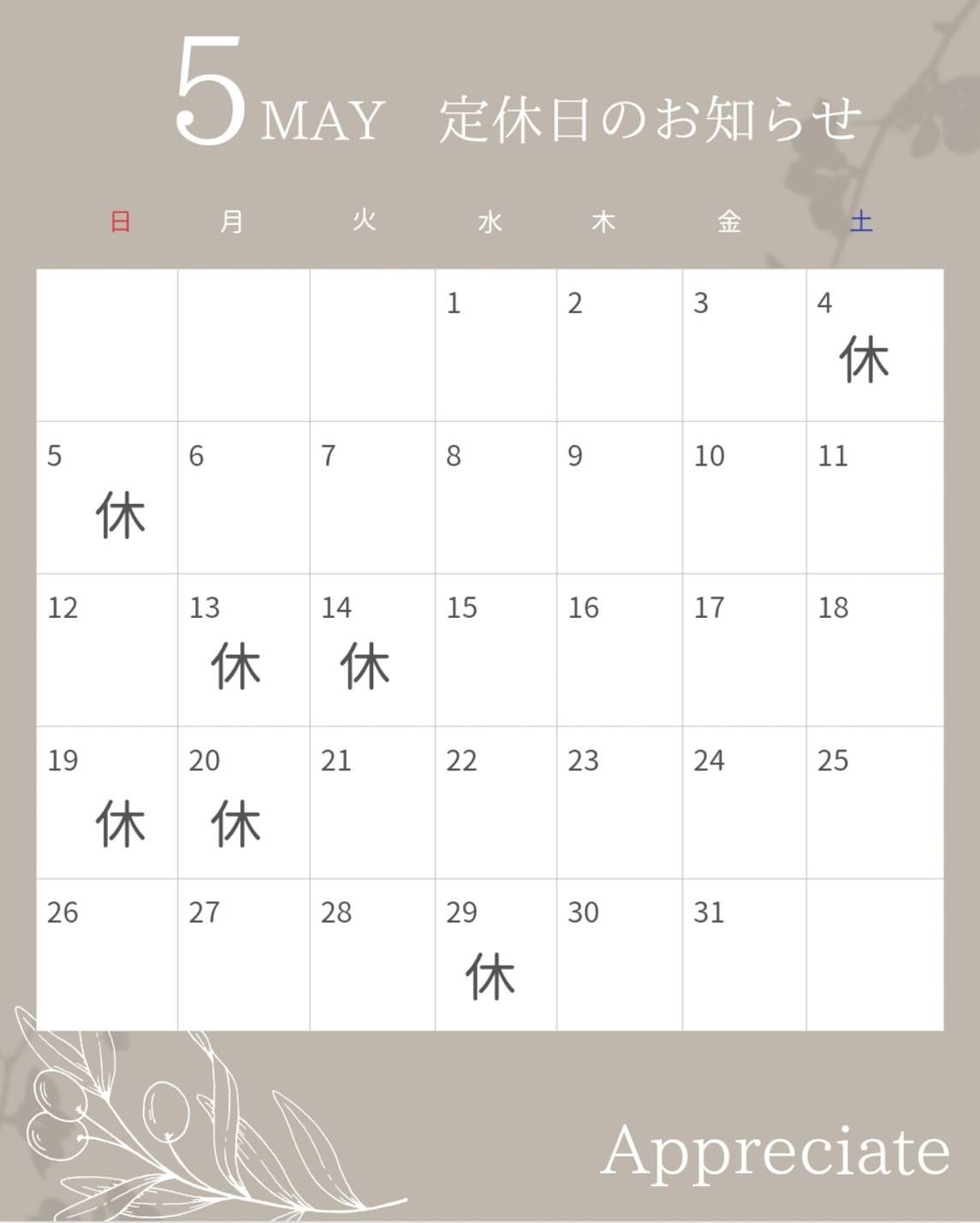 ※G.W中お休みの日がございますので、確認の上ご予約宜しくお願い致します。