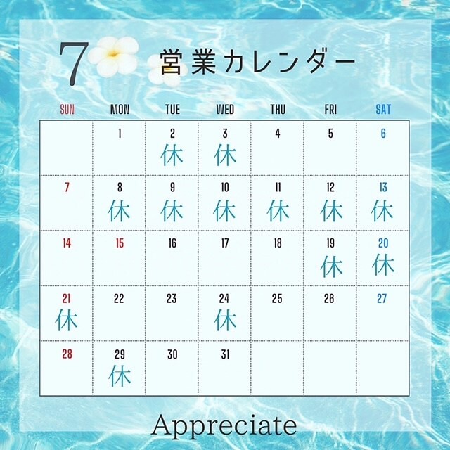 7月のお休みのお知らせです!