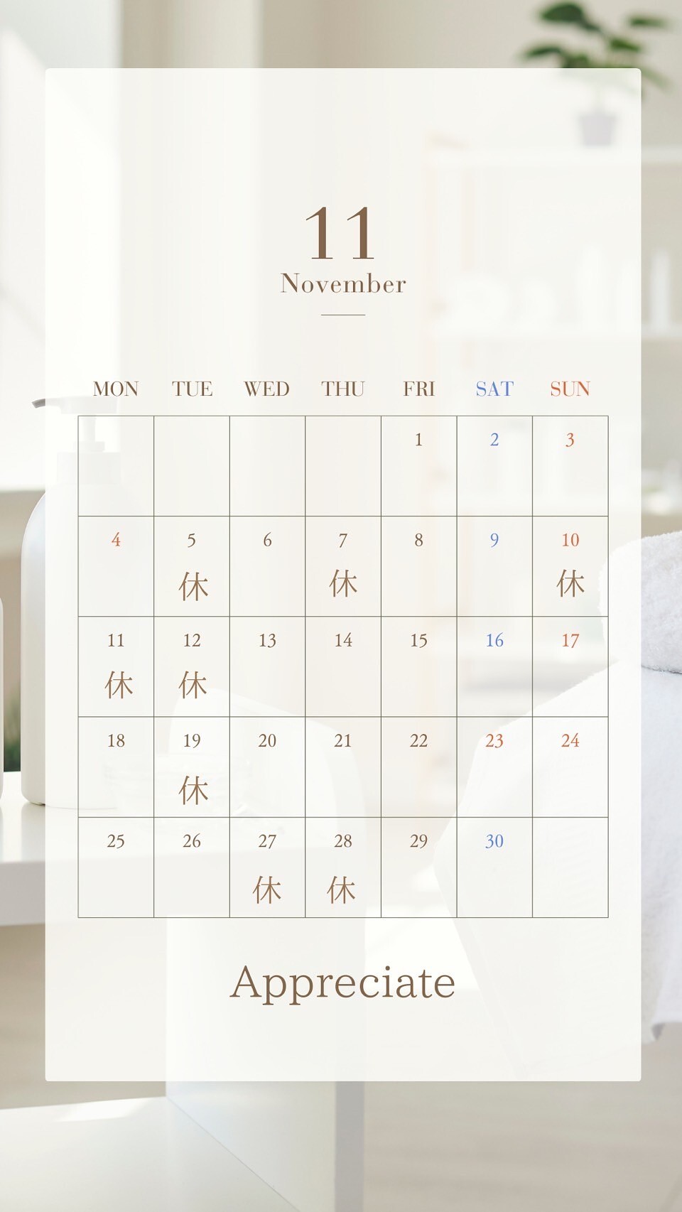 では、11月のお休みも東京出張や検診などがあり、変則になってしまい申し訳ありませんが