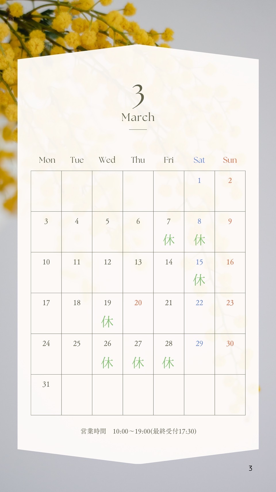 3月のお休みのお知らせです!