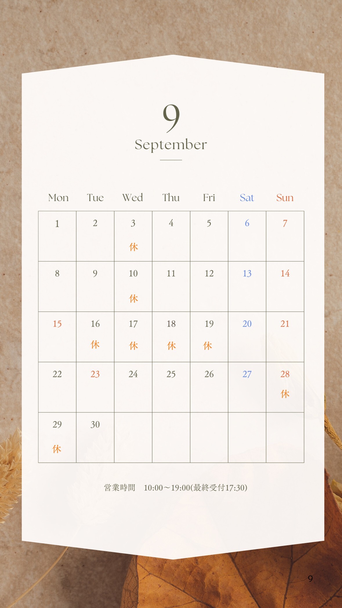 営業時間 / 10:00 - 19:00(完全予約制)
